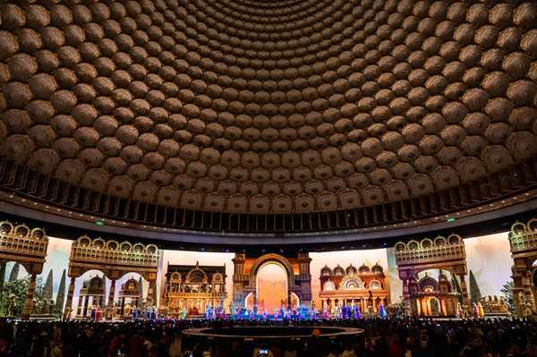 游览梵宫一定不要错过吉祥颂,这是由国内高水平团队导演排练的、高科技多媒体立体演绎佛陀觉悟成道的历程的环幕立体电影,观众在圆型剧场中,四周环幕,中心是圆型舞台,天棚也有声光变幻设备,整场演出气势宏大,立体声光变幻无穷,美轮美奂,即便看完之后游客依旧久久沉浸其中。