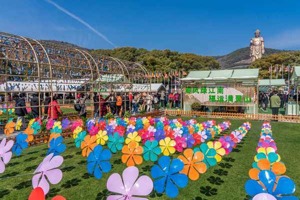 灵山胜境的春天也是百花盛开,三月初的梅花争奇斗艳,游客沉浸其中,感觉春天的美好,感受着自由与阳光的惬意。