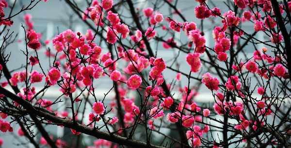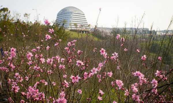 晚樱花色粉红,自3月中旬至4月中旬相继开放。