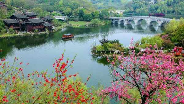 内,本月可以欣赏江南园的贴梗海棠、龙景书院的椿寒樱、国际园的玉兰等,3月则可以欣赏巴渝园的桃花、卧龙石的垂丝海棠、湿地花谷的郁金香等。