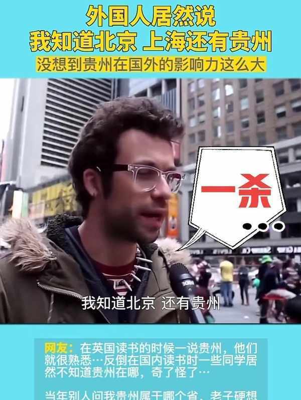 这个外国的网友说,我知道北京,还有贵州,我知道有一个著名的黄果树瀑布,还有另外一个外国网友说,我知道北京、上海,还有贵州。
