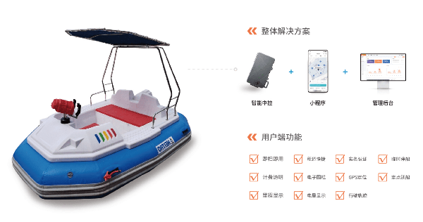 与游船传统租赁模式相比,共享游船更具人性化、便利化、智能化,通过智能中控设备,对游船进行远程管理,无需太多游船管理人员,规划游船行驶区域、游船管理区域、游船故障上报、营收数据统计等均可在共享游船的平台上“一站式”完成。