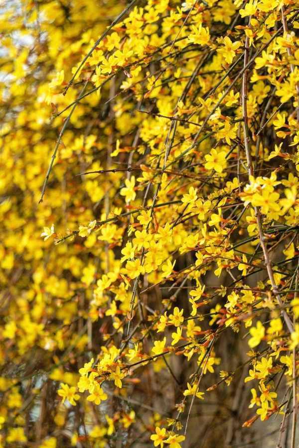 春风一吹,守时的迎春花便密密匝匝地绽放在枝蔓上,躲开闹市的喧嚣,伸展一冬的束缚,向世人昭示着春之来临,蔚为壮观。