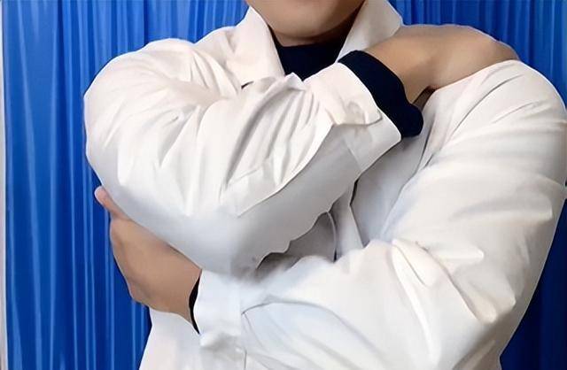 动作要点:做时要以左手拍右肩,右手拍左侧腹,力度记得适中,完成曲肘后向内便可做此动作,同样每天来回三十六次即可。