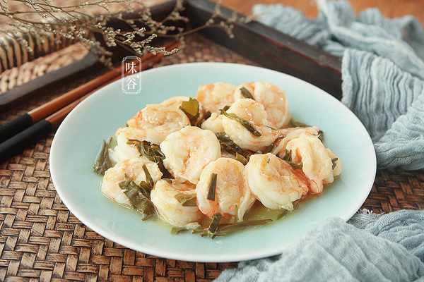 3、热油锅,等油温五成左右,放入虾仁炒至变色,倒入适量茶水,加盐,烹点黄酒翻炒均匀,入味后加入一点水淀粉和茶叶,即可起锅装盘。