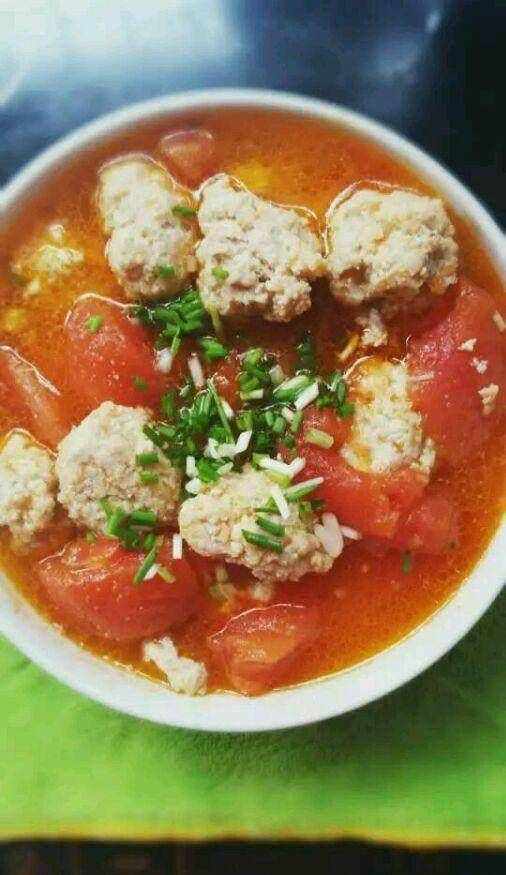 在来一个给儿子做的番茄豆腐肉末丸子一家大人小孩老人都喜欢吃
