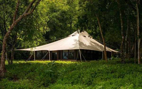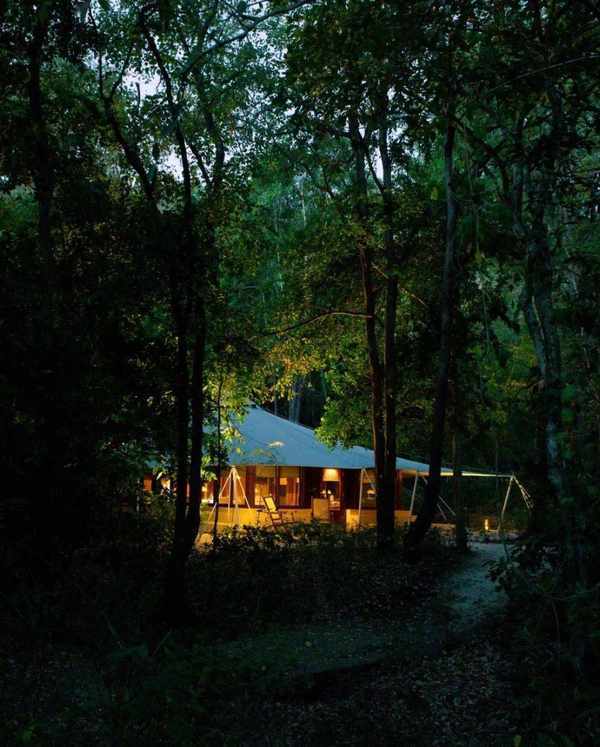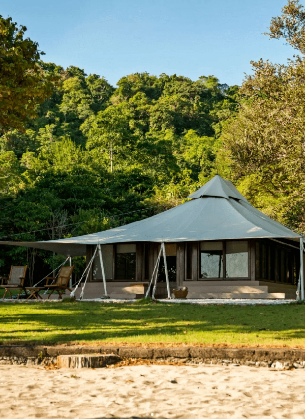 12顶野奢帐篷(分为丛林帐篷和海洋帐篷)散落在巨大的参天古木和海边茂密的植被间,面积为统一的58㎡,带着纯白帏幔的舒适大床置于中央,四周全是纯木质的家具。