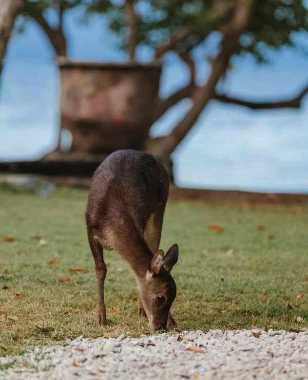酒店的设计师 Jean-Michel Gathy 刻意回避了现代物件的大量植入,落地窗将穿过丛林的光线倒映在每位住客眼前,你可以靠在窗边的床榻欣赏落日美景,或者同真正的岛主们(小鹿、猴子等小型动物)互动。