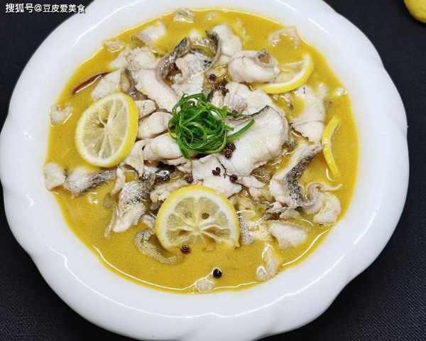 7、关小火,保持汤要沸不沸的样子,一片一片地把鱼肉放下去,再用手把柠檬汁挤出来,挤进汤里,柠檬片也放进去,煮出柠檬清香。1分钟后,出锅,完成。