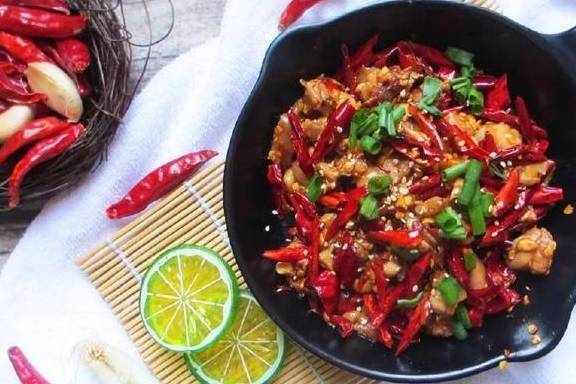 辣子鸡在川菜里算是老子辈的级别,在饭店里吃这道菜,往往是辣椒多,鸡丁少得可怜,需要拿着筷子在辣椒堆里仔细翻找才能找到小鸡肉,炸过的鸡肉外酥里嫩,花椒和辣椒赋予了鸡肉麻辣鲜香的口感。