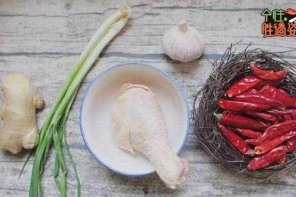鸡腿干辣椒蒜头葱姜