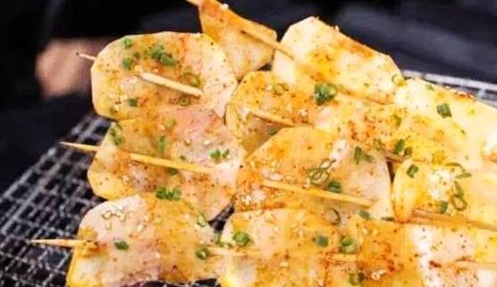 三、烤土豆片:土豆片在各种小吃里面都是“常客”,不管是烧烤、炸串,还是火锅、小炒,土豆片度各有一番与众不同的美味,可以说是无论怎么做都有吃货喜欢。