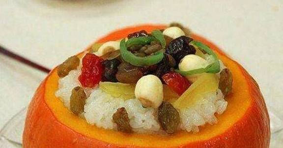 在这里,南瓜不仅仅是一个容器,它还可以保持一个很高的温度,能够保证吃到里面的糯米饭是软乎乎的。并且在吃的时候,因为蒸的已经很软透了,所以吃一勺糯米,吃一勺米饭,再吃一点南瓜。这样,一道很有诚意的南瓜八宝饭就完成了。