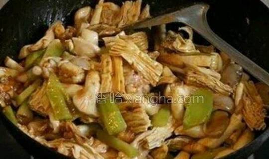 8.把牛蛙和所有蔬菜依次放入锅内,炒啊炒,翻啊翻,不用加水,再调下咸淡。