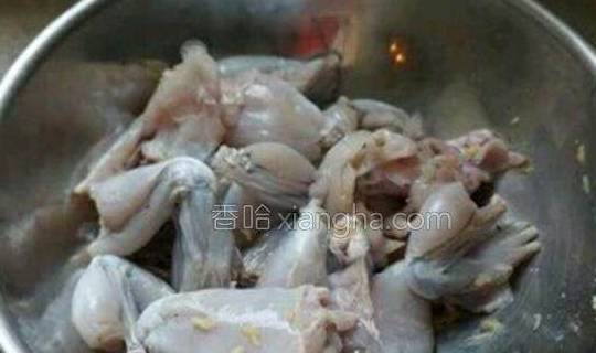 烹饪步骤:1.牛蛙剁块,加胡椒粉和姜汁去腥。
