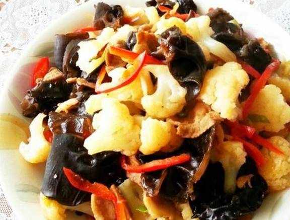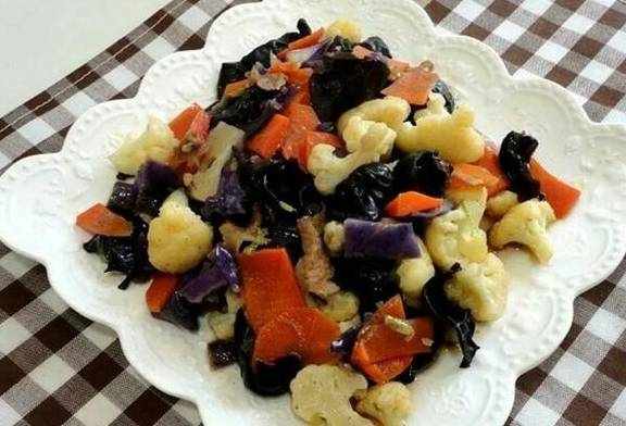 美食天下大餐——做法:黑木耳提前泡发,摘洗干净,备用;花椰菜洗净,掰成小朵,胡萝卜切片,葱、蒜切碎备用;将花椰菜和胡萝卜片入开水锅中焯烫2分钟,捞出控干水分;锅烧热,倒入橄榄油,下葱、蒜碎爆香;倒入焯好的花椰菜和胡萝卜片,翻炒均匀;加入泡发的黑木耳,最后调入少许盐,翻炒均匀即可。