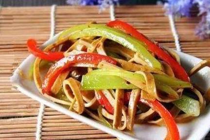 材料:莴笋、豆干、胡萝卜、白胡椒粉、酱油、麻油。