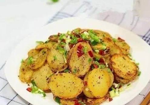 4、最后参与土豆片、盐、白糖、生抽炒熟便可出锅。