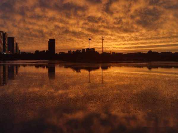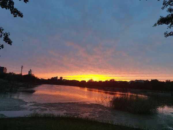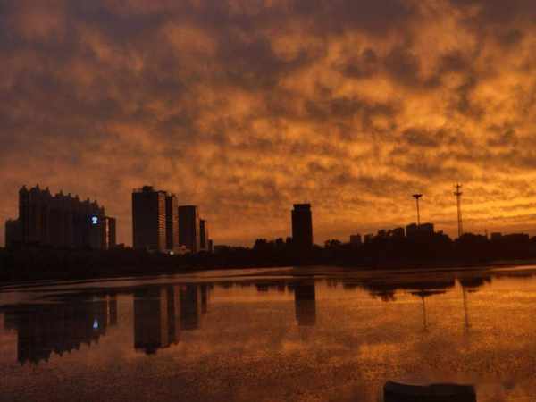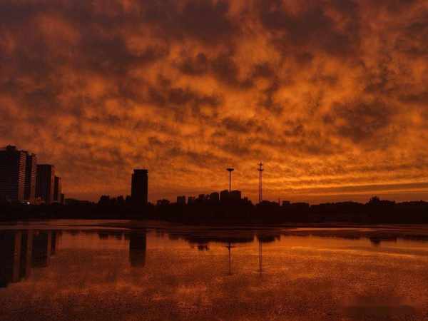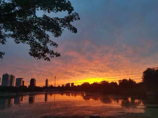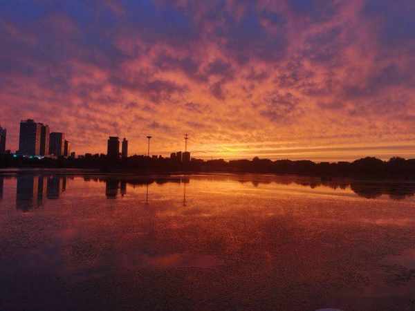 傍晚散步留下的夕陽紅,映紅了天空,映紅了薈萃湖面