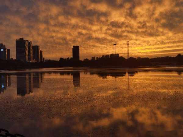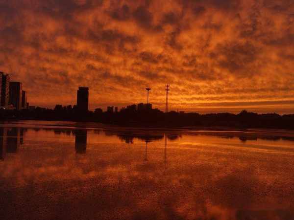原標題:傍晚散步留下的夕陽紅,映紅了天空,映紅了薈萃湖面
