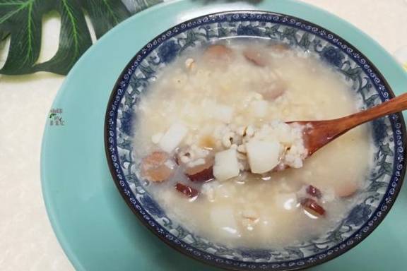 这道粥是选用薏米作为主要的食材,薏米是一种含有大量优质蛋白质的好宝贝,它里面的蛋白质比普通的大米,面粉还要高出很多倍,它还具有容易被吸收消化的特点。家里有小宝宝的朋友就应该知道,小孩子的辅食米粉很多口味中都带有薏米,那是因为薏米的食补作用特别的温和,没有任何副作用。最重要的一点是薏米还是一种可以美容护肤的食材,经常食用,可以帮助我们保持皮肤变得细腻有光泽,光滑水润水灵不再粗糙,还能消除皮肤上的各种斑点,经常用化妆品的爱美女性朋友也可能会发现,很多的化妆品中都有加入薏米的提取物,那是因为薏米具有防晒,减少皮肤暗沉,抑制皮肤中黑色素的形成,薏米的吃法有很多种,可以跟红豆一起煮水喝,可以跟冬瓜一起煮汤喝,还可以跟山药一起煮粥喝。薏米中的铁比番茄还要高出9倍,锌比青瓜还要高出10倍,营养上完胜这两种大众护肤食材。
