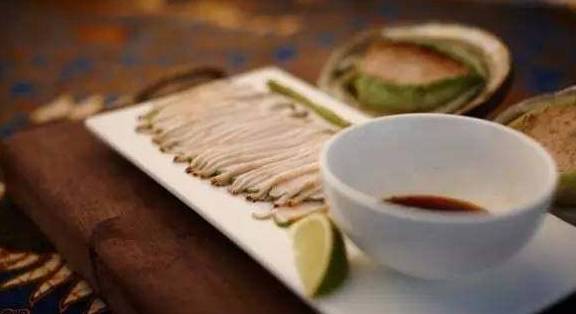 将鲍鱼的肝切成小段后快速飞水后,再配以柠檬醋拌匀即可,其味道具有独特的风味。飞水即为过水,就是先将锅里的水烧开,然后将鲍鱼肝快速投入后迅即捞起,使外熟内生,鲍鱼肝处于溏心状态为最佳。