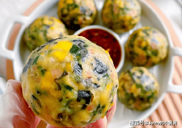 接着捏成几个小圆球,捏好后给每个小圆球裹上玉米面,反复裹三层为佳。