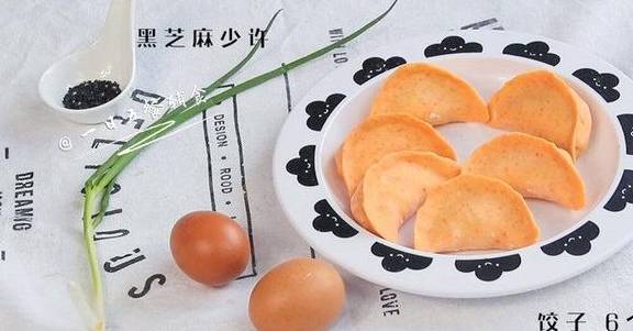 1.食材:饺子6个,鸡蛋2个,盐1克,葱花2根,黑芝麻少许