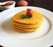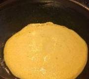 3.平底锅刷油,油热用勺子垂直倒入面糊,自然摊成饼(每次用勺子舀的时候搅拌一下避免沉淀),一个平底锅可以同时做三到四个饼