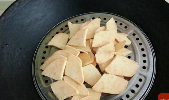 2.锅加水放屉子倒入红薯,盖好锅盖大火蒸20分钟