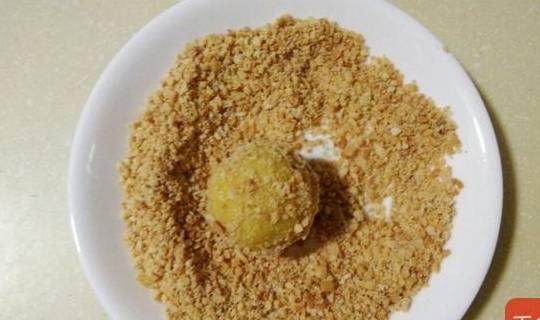 12.将每个红薯球依次在花生仁里滚一圈,全部做完就行了。