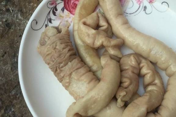 三、把处理好的肥肠当如凉水中大火烧开,慢火煮20到30分钟,这样的大肠就不会咬不动了,又爽又Q弹
