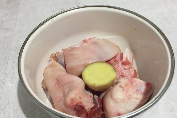 猪蹄、姜、盐、料酒。
