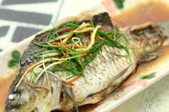 3.锅内放进清水进行煮沸,然后把腌制好的鲤鱼放进热水锅里,盖上锅盖,再继续蒸8分钟,随后把鱼和鱼肚子里塞进去的葱姜片全部都取出来,然后在鱼的身上撒上提前准备好的适量的葱丝,姜丝,浇上适量的蒸鱼豉油,不需要加盐,因为蒸鱼豉油自身就会有一定的咸味,因此大伙儿不用再放盐了,加蒸鱼豉油制作出来的蒸鱼,吃起来,十分的鲜,鱼的肉质也十分的嫩,不仅成年人喜欢吃,就连口味挑剔的小孩子和老年人也十分喜欢。