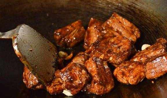 4.最后将排骨倒入锅中,加入足量的清水,大火烧开后,盖上盖子闷四十分钟左右,待到芋头能用筷子轻易插透,排骨软烂脱骨,打开锅铲后持续用大火不停翻炒,直至锅铲汤汁呈现黏稠状,即可关火出锅;