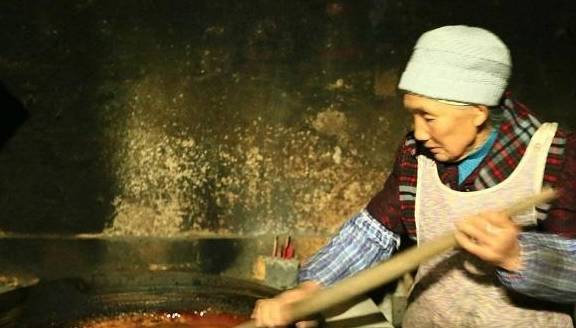 这锅水要烧好几个小时,直到把水分烧干,剩下糖后就开始炒糖,炒糖时间大概一两个小时,火候差不多了就用木盆舀出来,只能用木制工具。炒糖的工具,盛糖的工具都只能用木制的,不然粘得你头疼。