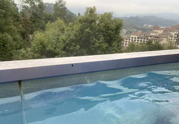 这就是无边泳池了,说是无边,实际上就是临空一面安装了高强度玻璃墙。