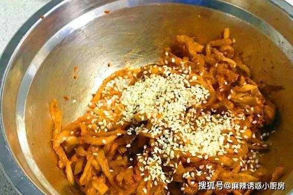10、最后撒上少量白芝麻,搅拌均匀就可以装盘了。
