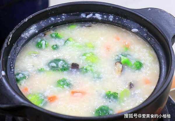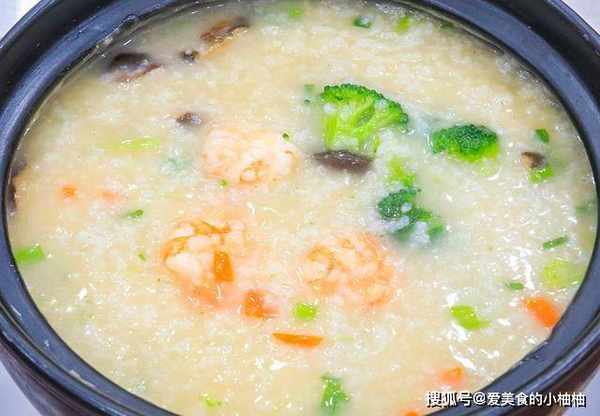 8分钟以后米粥已经熬得非常绵香,把虾仁、香菇、西兰花和胡萝卜倒入锅中,煮至米粥再次沸腾转为小火,加入食盐3克、胡椒粉2克继续熬制,食材全部煮熟以后即可关火上桌,这道浓郁鲜香的虾粥就做好了。