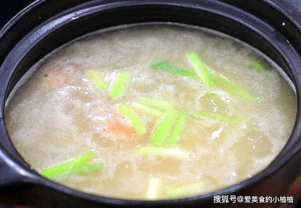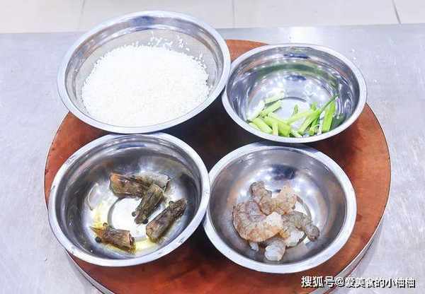 把砂锅烧热,加入少许油滑锅,油温五成热时放入葱段和虾头,开小火煎出虾油,把葱段爆香,加入适量的开水,倒入准备好的大米,顺着一个方向不停地搅拌,注意一定要加开水并且不停地搅拌。