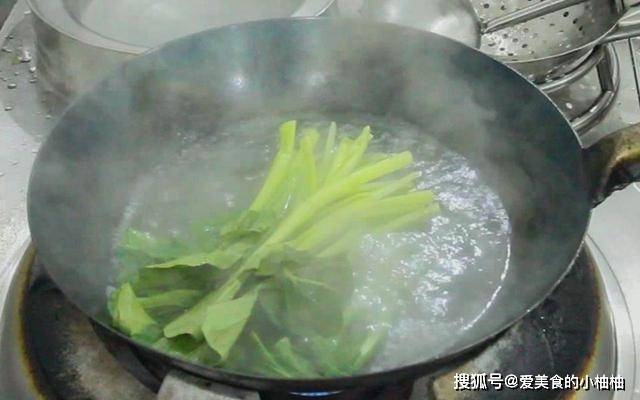 锅内烧水,加入食盐、植物油,放入切好的菜心焯水15秒左右即可捞出摆盘。