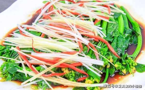 锅内烧油,油烧至7成热时,把热油浇在菜心上即可,美味即成。