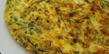 4.锅里放少许油烧热,将香椿蛋液倒入,大火煎至一面金黄后翻面。
