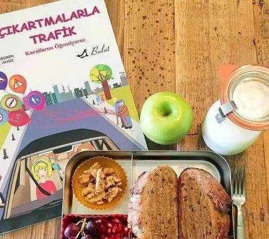 土耳其学生的午餐,带进学校。黑麦面包,核桃,水果和keffir。营养还是很全的啊!