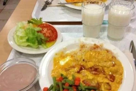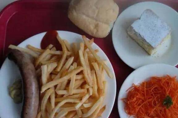 德国学生的午餐。薯条、热狗、胡萝卜和面包,布丁。看着确实是有一种单调的感觉,这样的午餐真的能吃饱吗?真的很为他们的健康着想啊!