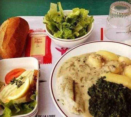 法国学生的午餐。有鱼、菠菜、土豆,沙拉,奶酪和面包。法国是一个浪漫的国家,其实他们国家的这种美食我还是比较能够接受的,还在我的接受范围之内!