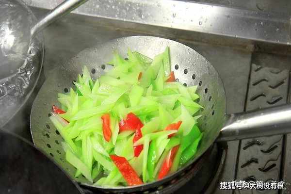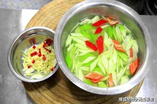 ,佛手瓜断生以后立即捞出,用清水冲洗过凉,保持脆感。