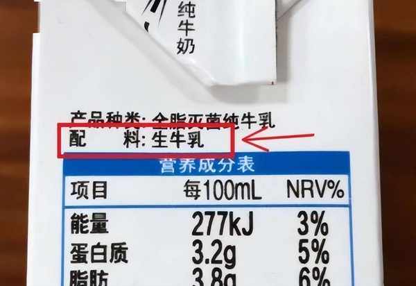 ---提醒大家在买牛奶的时候,可以先观察一下牛奶的配料表,如果只有生牛乳这三个字而没有其他的配料,这就是真正的牛奶。