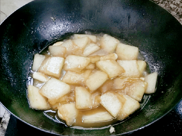 3、加入少量清水,1勺生抽,1勺蚝油,焖煮3-5分钟左右,开盖加入适量的食盐、鸡精调味,搅拌均匀,即可出锅。