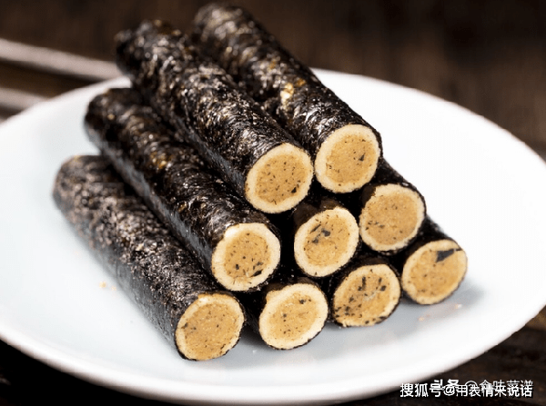 海苔肉松卷的原身是海苔片,绿色的薄片香香脆脆,仿佛带着大海的味道。而海苔肉松卷与之不同的地方是它带有夹心,焦香的海苔片裹上饱满的肉松馅料,两样食材完美配合,营养更丰富。
